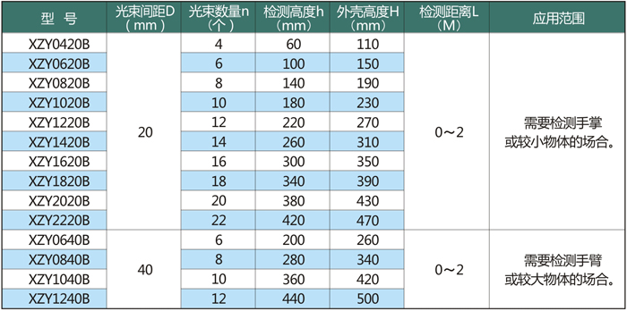 XZY-B系列光電保護器:0-10000mm,適合10米以內(nèi)的臺面或區(qū)域;