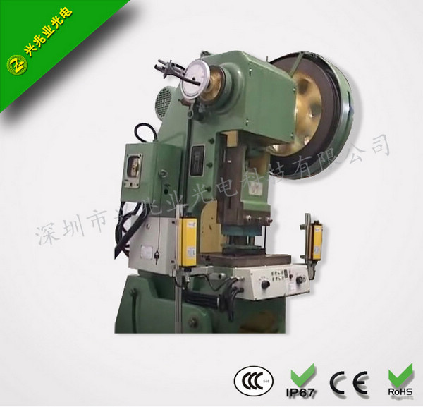 安全光柵的紅外線光束會(huì)形成一個(gè)保護(hù)區(qū)域,當(dāng)人的身體部位或者其他異物進(jìn)入這個(gè)區(qū)域,遮住了紅外線光束,光柵就會(huì)觸發(fā)機(jī)械的報(bào)警裝置,使設(shè)備停止運(yùn)轉(zhuǎn)。從而保護(hù)操作人員的安全。